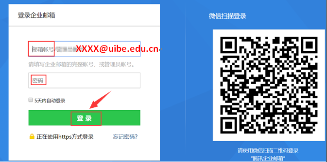 第三步,在弹出的页面上填写您完整邮箱的帐号(包含@uibe.edu.cn)和密码,点击“登录”,即可成功绑定新版邮件系统。